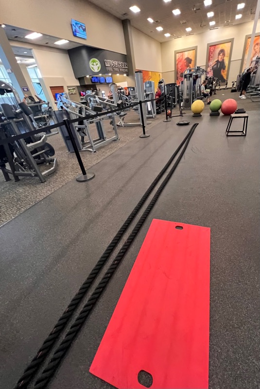 Happy 😊 Saturday everyone ❣️ Added baby weights orange colored 5 lbs for fast weighted punches 🥊 and heavy 45 lbs for slow farmer’s 🧑🌾 walk up and down the ropes line. Variety is the spice of life! Enjoy your weekend 🙌