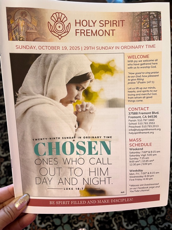 Like this lady sitting to my left who saw my Catholic bulletin and asked to read it. Yes, of course I said and walked it over to her. A few minutes later, when she returned it, I noticed she was in an aesthetically pleasant outfit: a Vintage JCrew kinda vibe. White canvas shoes, tan ankle socks, white collar shirt, tan knitted cardigan with cute brown buttons where she buttoned the first one and allowed the sweater to look like a lose and cute cape. She topped off the look with animal print eyeglasses that framed her face well.